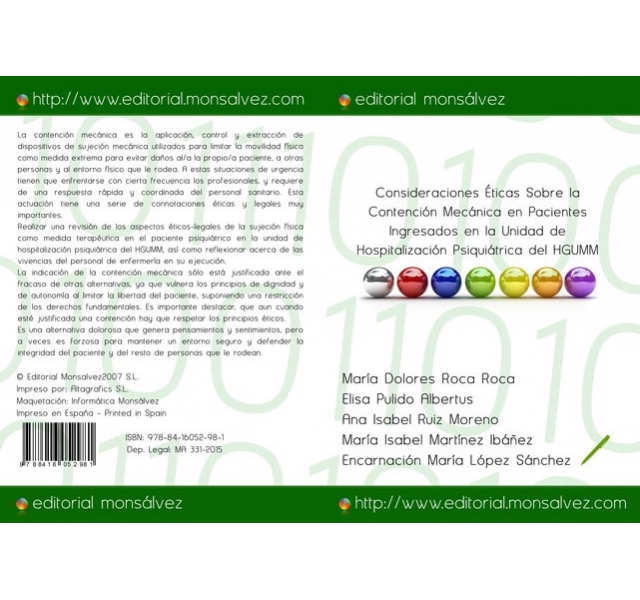 La contención mecánica es la aplicación, control y extracción de dispositivos de sujeción mecánica utilizados para limitar la movilidad física como medida extrema para evitar daños al/a la propio/a paciente, a otras personas y al entorno físico que le rodea. A estas situaciones de urgencia tienen que enfrentarse con cierta frecuencia los profesionales, y requiere de una respuesta rápida y coordinada del personal sanitario. Esta actuación tiene una serie de connotaciones éticas y legales muy importantes. Realizar una revisión de los aspectos éticos-legales de la sujeción física como medida terapéutica en el paciente psiquiátrico en la unidad de hospitalización psiquiátrica del HGUMM, así como reflexionar acerca de las vivencias del personal de enfermería en su ejecución. La indicación de la contención mecánica sólo está justificada ante el fracaso de otras alternativas, ya que vulnera los principios de dignidad y de autonomía al limitar la libertad del paciente, suponiendo una restricción de los derechos fundamentales. Es importante destacar, que aun cuando esté justificada una contención hay que respetar los principios éticos. Es una alternativa dolorosa que genera pensamientos y sentimientos, pero a veces es forzosa para mantener un entorno seguro y defender la integridad del paciente y del resto de personas que le rodean.