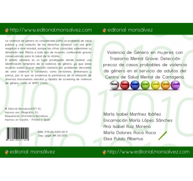 La violencia de género es considerada como un problema de salud publica y una violación de los derechos humanos con una gran magnitud a nivel mundial, aunque las cifras conocidas subestiman su dimensión real. Afecta a todo tipo de mujeres, conllevando graves consecuencias para la salud de la víctima. El ambito sanitario es un lugar privilegiado donde realizar una identificación temprana de la violencia de género, ya que estas mujeres suelen buscar atención sanitaria por problemas derivados de esta violencia o cotidianos como revisiones, embarazos y partos, por lo que se evidencia la pertinencia de la utilización de diversos instrumentos sencillos y rápidos de screening de violencia de género, como el WAST Corto.Se realiza el diseño de un estudio de investigación con las siguientes características: -Metodología: estudio observacional, de tipo descriptivo y transversal, de enfoque cuantitativo. Se propone una muestra de mujeres susceptibles de sufrir violencia de género diagnosticadas de trastorno mental grave usuarias del Centro de Salud Mental de Cartagena.-Objetivo general: Determinar la prevalencia de casos probables de violencia de género en mujeres con TMG atendidas en las consultas de salud mental de adultos.-Objetivos especificos: Sensibilizar a los profesionales de la red de salud mental sobre la detección y abordaje de la violencia ejercida sobre las mujeres con trastorno mental grave, promover la formación de los profesionales sanitarios acerca de detección precoz y actuación contra la violencia de género y favorecer la creación de políticas contra la violencia de género por parte de la administración pública.