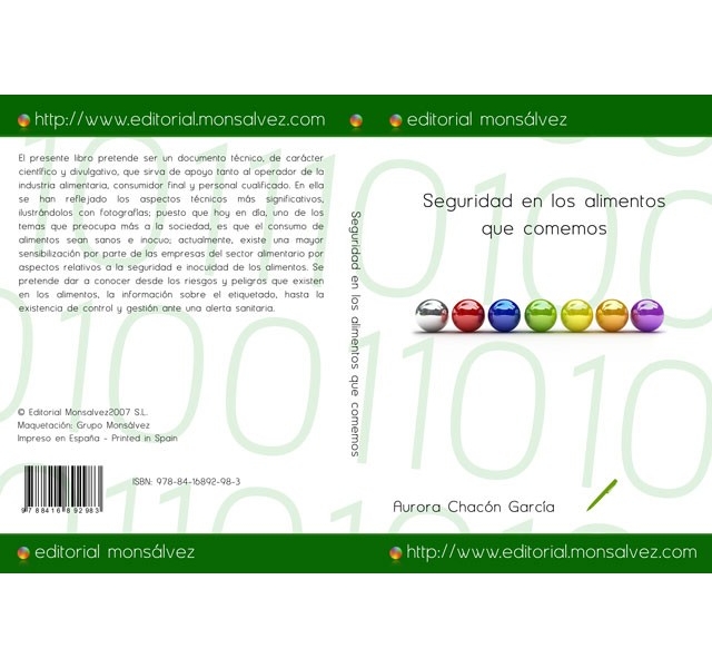 El presente libro pretende ser un documento técnico, de carácter científico y divulgativo, que sirva de apoyo tanto al operador de la industria alimentaria, consumidor final y personal cualificado. En ella se han reflejado los aspectos técnicos más significativos, ilustrándolos con fotografías; puesto que hoy en día, uno de los temas que preocupa más a la sociedad, es que el consumo de alimentos sean sanos e inocuo; actualmente, existe una mayor sensibilización por parte de las empresas del sector alimentario por aspectos relativos a la seguridad e inocuidad de los alimentos. Se pretende dar a conocer desde los riesgos y peligros que existen en los alimentos, la información sobre el etiquetado, hasta la existencia de control y gestión ante una alerta sanitaria.