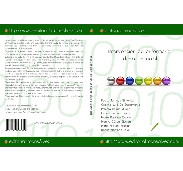 Introducción: La relación con la muerte de otros seres es compleja, manifestando sentimientos insólitos y de una intensidad transformada. En el duelo perinatal, los profesionales sanitarios muestran en ocasiones ansiedad y duda por falta de conocimientos o preparación. Objetivo: El objetivo principal es dar a conocer las distintas intervenciones de enfermería en el proceso de muerte y duelo perinatal en la unidad familiar. Material y método: Se trata de una revisión bibliográfica descriptiva. Para ésta se realizó una búsqueda electrónica, entre febrero y mayo de 2018, en bases de datos como PubMed, Cochrane Library, CINAHL, y se consultaron otras páginas oficiales de interés. Se seleccionaron un total de 17 artículos. Resultados y discusión: Se han analizado tres guías de actuación sobre la muerte y el duelo perinatal, contrastando sus recomendaciones entre sí y con la evidencia científica recogida en los artículos. Se destacan cuatro aspectos de interés en la intervención enfermera: comunicación, entorno, aspectos legales y perspectiva del profesional sanitario. Conclusión: Se evidencia la necesidad de un documento único a nivel nacional, adaptable a cada caso y con un enfoque holístico que guíe la actuación de los profesionales ante el duelo perinatal, promovida desde los organismos oficiales. Además de fomentar y facilitar tanto la formación de los. Profesionales, como la investigación científica sobre este tema. Palabras clave: Muerte perinatal, muerte fetal, duelo o pesar, atención de enfermería, mortinato.
