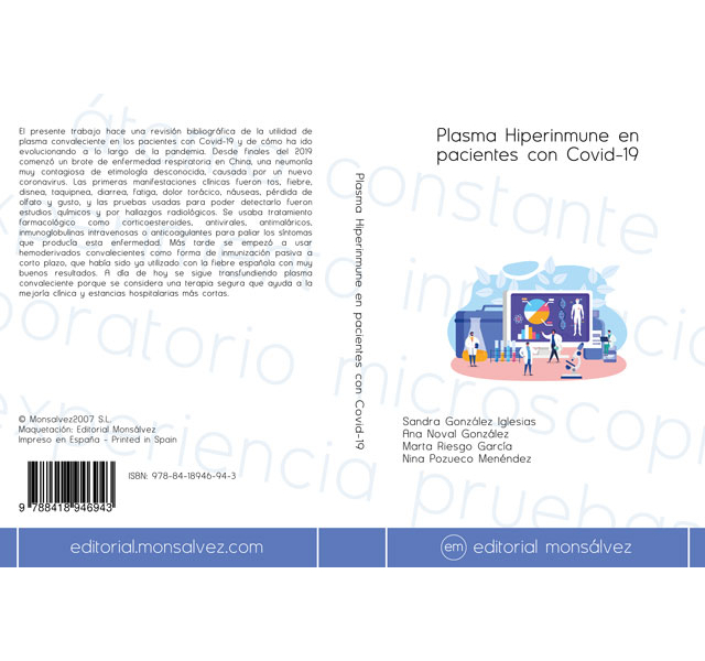 El presente trabajo hace una revisión bibliográfica de la utilidad de plasmaconvaleciente en los pacientes con Covid-19 y de cómo ha ido evolucionando a lo largode la pandemia. Desde finales del 2019 comenzó un brote de enfermedad respiratoriaen China, una neumonía muy contagiosa de etimología desconocida, causada por unnuevo coronavirus. Las primeras manifestaciones clínicas fueron tos, fiebre, disnea,taquipnea, diarrea, fatiga, dolor torácico, náuseas, pérdida de olfato y gusto, y laspruebas usadas para poder detectarlo fueron estudios químicos y por hallazgosradiológicos. Se usaba tratamiento farmacológico como corticoesteroides, antivirales,antimaláricos, inmunoglobulinas intravenosas o anticoagulantes para paliar lossíntomas que producía esta enfermedad. Más tarde se empezó a usar hemoderivadosconvalecientes como forma de inmunización pasiva a corto plazo, que había sido yautilizado con la fiebre española con muy buenos resultados. A día de hoy se siguetransfundiendo plasma convaleciente porque se considera una terapia segura queayuda a la mejoría clínica y estancias hospitalarias más cortas.