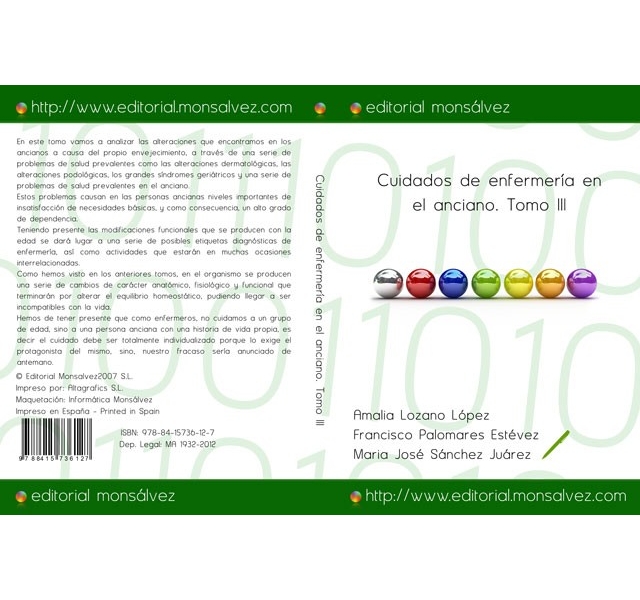 En este tomo vamos a analizar las alteraciones que encontramos en los ancianos a causa del propio envejecimiento, a través de una serie de problemas de salud prevalentes como las alteraciones dermatológicas, las alteraciones podológicas, los grandes síndromes geriátricos y una serie de problemas de salud prevalentes en el anciano. Estos problemas causan en las personas ancianas niveles importantes de insatisfacción de necesidades básicas, y como consecuencia, un alto grado de dependencia. Teniendo presente las modificaciones funcionales que se producen con la edad se dará lugar a una serie de posibles etiquetas diagnósticas de enfermería, así como actividades que estarán en muchas ocasiones interrelacionadas. Como hemos visto en los anteriores tomos, en el organismo se producen una serie de cambios de carácter anatómico, fisiológico y funcional que terminarán por alterar el equilibrio homeostático, pudiendo llegar a ser incompatibles con la vida. Hemos de tener presente que como enfermeros, no cuidamos a un grupo de edad, sino a una persona anciana con una historia de vida propia, es decir el cuidado debe ser totalmente individualizado porque lo exige el protagonista del mismo, sino, nuestro fracaso sería anunciado de antemano.