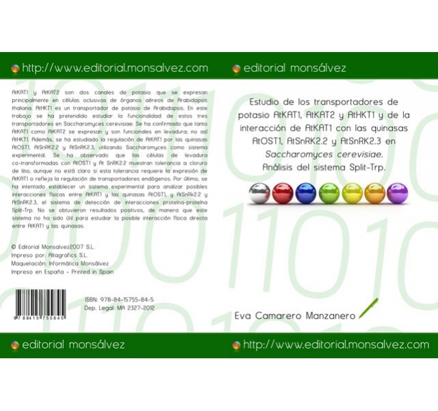 AtKAT1 y AtKAT2 son dos canales de potasio que se expresan principalmente en células oclusivas de órganos aéreos de Arabidopsis thaliana. AtHKT1 es un transportador de potasio de Arabidopsis. En este trabajo se ha pretendido estudiar la funcionalidad de estos tres transportadores en Saccharomyces cerevisiae. Se ha confirmado que tanto AtKAT1 como AtKAT2 se expresan y son funcionales en levadura; no así AtHKT1. Además, se ha estudiado la regulación de AtKAT1 por las quinasas AtOST1, AtSnRK2.2 y AtSnRK2.3, utilizando Saccharomyces como sistema experimental. Se ha observado que las células de levadura co-transformadas con AtOST1 y At SnRK2.2 muestran tolerancia a cloruro de litio, aunque no está claro si esta tolerancia requiere la expresión de AtKAT1 o refleja la regulación de transportadores endógenos. Por último, se ha intentado establecer un sistema experimental para analizar posibles interacciones físicas entre AtKAT1 y las quinasas AtOST1, y AtSnRk2.2 y AtSnRK2.3, el sistema de detección de interacciones proteína-proteína Split-Trp. No se obtuvieron resultados positivos, de manera que este sistema no ha sido útil para estudiar la posible interacción física directa entre AtKAT1 y las quinasas.