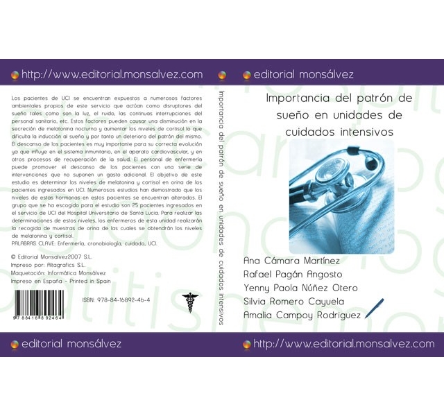 Los pacientes de UCI se encuentran expuestos a numerosos factores ambientales propios de este servicio que actúan como disruptores del sueño tales como son la luz, el ruido, las continuas interrupciones del personal sanitario, etc. Estos factores pueden causar una disminución en la secreción de melatonina nocturna y aumentar los niveles de cortisol lo que dificulta la inducción al sueño y por tanto un deterioro del patrón del mismo. El descanso de los pacientes es muy importante para su correcta evolución ya que influye en el sistema inmunitario, en el aparato cardiovascular, y en otros procesos de recuperación de la salud. El personal de enfermería puede promover el descanso de los pacientes con una serie de intervenciones que no suponen un gasto adicional. El objetivo de este estudio es determinar los niveles de melatonina y cortisol en orina de los pacientes ingresados en UCI. Numerosos estudios han demostrado que los niveles de estas hormonas en estos pacientes se encuentran alterados. El grupo que se ha escogido para el estudio son 25 pacientes ingresados en el servicio de UCI del Hospital Universitario de Santa Lucia. Para realizar las determinaciones de estos niveles, los enfermeros de esta unidad realizarán la recogida de muestras de orina de las cuales se obtendrán los niveles de melatonina y cortisol. PALABRAS CLAVE: Enfermería, cronobiología, cuidado, UCI.