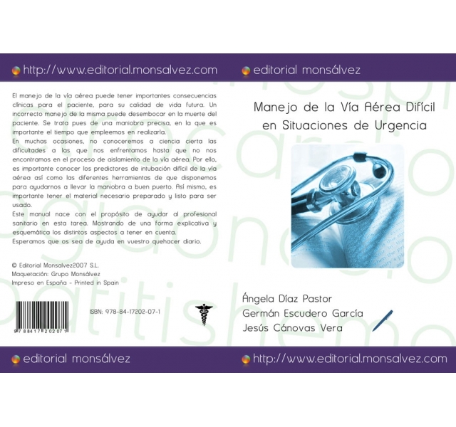El manejo de la vía aérea puede tener importantes consecuencias clínicas para el paciente, para su calidad de vida futura. Un incorrecto manejo de la misma puede desembocar en la muerte del paciente. Se trata pues de una maniobra precisa, en la que es importante el tiempo que empleemos en realizarla. En muchas ocasiones, no conoceremos a ciencia cierta las dificultades a las que nos enfrentamos hasta que no nos encontramos en el proceso de aislamiento de la vía aérea. Por ello, es importante conocer los predictores de intubación difícil de la vía aérea así como las diferentes herramientas de que disponemos para ayudarnos a llevar la maniobra a buen puerto. Así mismo, es importante tener el material necesario preparado y listo para ser usado. Este manual nace con el propósito de ayudar al profesional sanitario en esta tarea. Mostrando de una forma explicativa y esquemática los distintos aspectos a tener en cuenta. Esperamos que os sea de ayuda en vuestro quehacer diario.