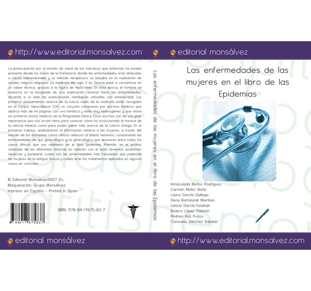 La preocupación por el estado de salud de los individuos que enferman ha estado presente desde los inicios de la Prehistoria, donde las enfermedades eran atribuidas a causa sobrenaturales y su método terapéutico se basaba en la realización de rituales mágico-religiosos. La medicina del siglo V en Grecia pasó a convertirse en un saber técnico, gracias a la figura de Hipócrates. En ésta época, el hombre se aventura en la búsqueda de una explicación racional hacia las enfermedades, dejando a un lado las explicaciones mitológicas utilizadas con anterioridad. Los primeros pensamientos acerca de la nueva visión de la medicina están recogidos en el Corpus Hipocráticum (CH), un conjunto compuesto por escritos médicos que abarca más de mil páginas con una temática y estilo muy heterogéneo y que reúne los primeros textos médicos de la Antigüedad clásica. Éstos escritos son de una gran importancia que nos sirven tanto para conocer cómo ha evolucionado la historia de la ciencia médica, como para poder saber más acerca de la cultura Griega. En el presente trabajo, analizaremos la información relativa a las mujeres, a través del estudio de los diferentes casos clínicos relativos al ámbito femenino, comparando las enfermedades de tipo ginecológico y no ginecológico que aparecen entre todos los casos clínicos que son relatados en el libro Epidemias. Además, en el análisis realizado de las diferentes historias en relación con el sexo femenino, podremos observar y comparar cuales son las enfermedades más frecuentes que padecían las mujeres en la antigua Grecia y cuáles eran los tratamientos aplicados en algunos casos en concreto.