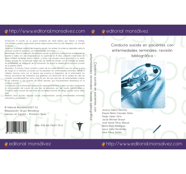 Introducción. El suicidio es un grave problema de salud pública que afecta a familias, comunidades y países provocando graves repercusiones entre los más allegados, con una alta incidencia.Objetivos. El principal objetivo del presente estudio fue analizar la evidencia disponible sobre la conducta suicida en pacientes con enfermedades terminales.Metodología. Para la realización del presente estudio se buscaron publicaciones académicas en español e inglés, con una antigüedad que no superarse los 10 años, utilizando como bases de datos PubMed, Academic Search Premier y Scielo. Los estudios fueron excluidos si no tenían acceso gratuito. No se restringió ningún tipo de diseño de estudio, con la finalidad de ampliar las posibilidades de adquisición de la información. Se evaluó la calidad de los artículos a través de la plantilla CASPe.Resultados. 13 artículos fueron incluidos, a partir de los cuales demostró que uno de los grupos de riesgo en lo referente al suicidio son los pacientes con enfermedades terminales, debido a múltiples factores como son el impacto que produce el diagnóstico de la enfermedad, los efectos secundarios del tratamiento que producen una disminución de la calidad de vida, las variables sociodemográficas, entre otros. Es por ello que este tipo de enfermedades originan en los individuos a una situación de estrés elevado, que frecuentemente desemboca en la conducta suicida.Conclusiones. Los profesionales sanitarios, en especial enfermería poseen una labor fundamental en la prevención del suicidio en este tipo de pacientes, por ello resulta imprescindible su formación, para conocer de este modo los principales factores de riesgo y poder actuar sobre ellos.Palabras clave. Suicidio, ideación suicida, comportamiento suicida, enfermedades terminales, enfermería y prevención.