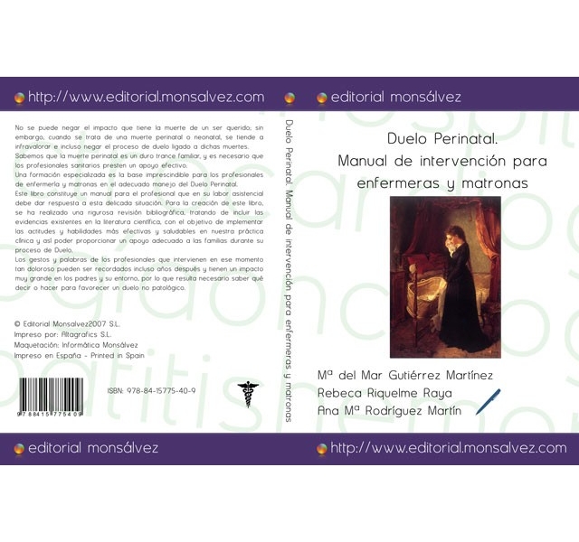 No se puede negar el impacto que tiene la muerte de un ser querido; sin embargo, cuando se trata de una muerte perinatal o neonatal, se tiende a infravalorar e incluso negar el proceso de duelo ligado a dichas muertes. Sabemos que la muerte perinatal es un duro trance familiar, y es necesario que los profesionales sanitarios presten un apoyo efectivo. Una formación especializada es la base imprescindible para los profesionales de enfermería y matronas en el adecuado manejo del Duelo Perinatal. Este libro constituye un manual para el profesional que en su labor asistencial debe dar respuesta a esta delicada situación. Para la creación de este libro, se ha realizado una rigurosa revisión bibliográfica, tratando de incluir las evidencias existentes en la literatura científica, con el objetivo de implementar las actitudes y habilidades más efectivas y saludables en nuestra práctica clínica y así poder proporcionar un apoyo adecuado a las familias durante su proceso de Duelo. Los gestos y palabras de los profesionales que intervienen en ese momento tan doloroso pueden ser recordados incluso años después y tienen un impacto muy grande en los padres y su entorno, por lo que resulta necesario saber qué decir o hacer para favorecer un duelo no patológico.